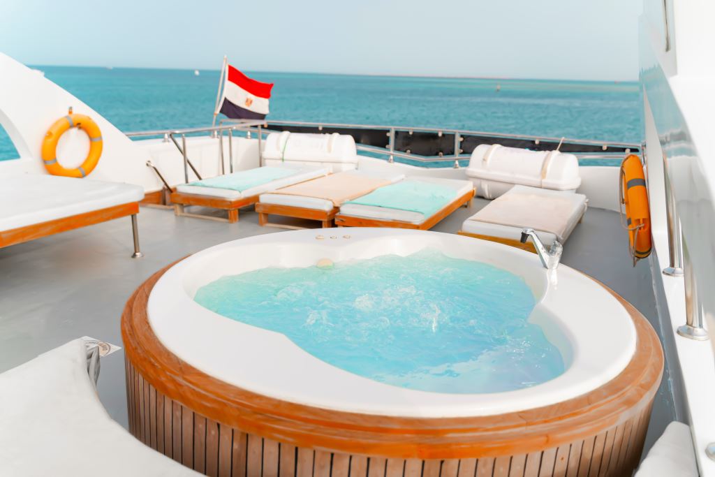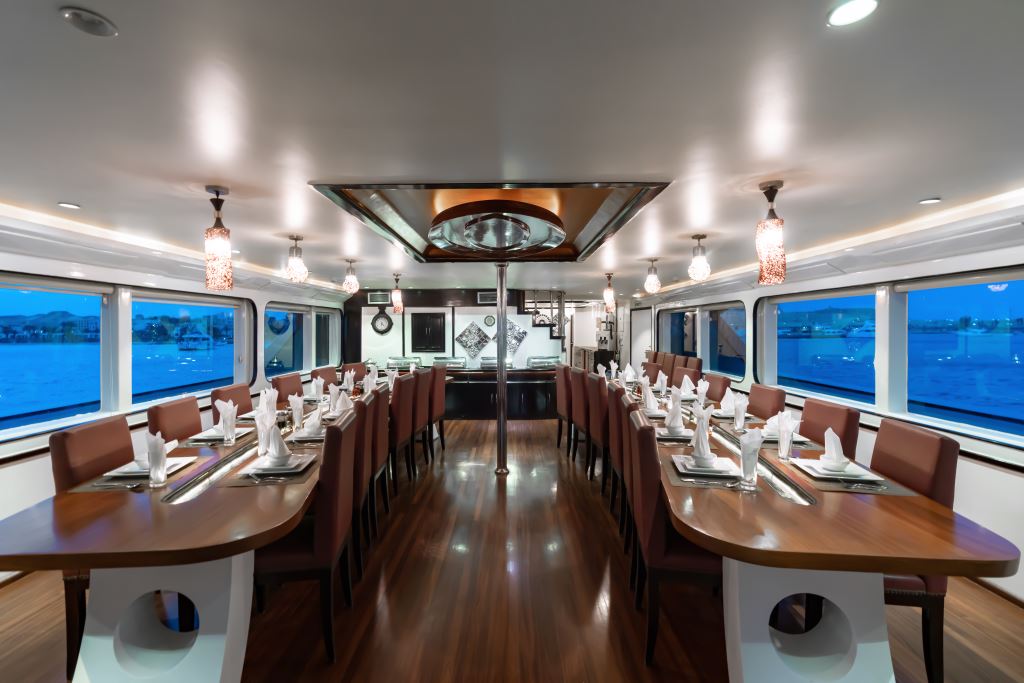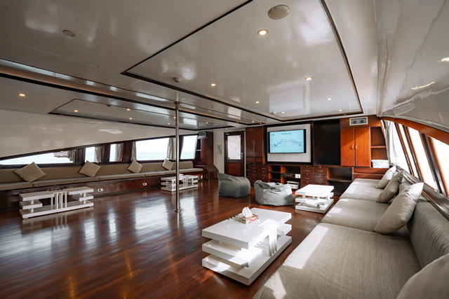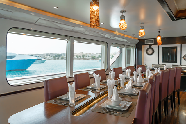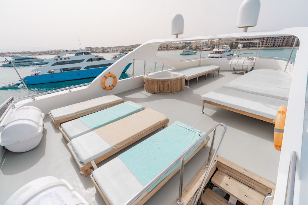 As well as the restaurant that serves 3 buffet meals through the day, Almonda liveaboard has plenty of room to chill out in between dives including a salon, partially covered sundeck and a larger open sun deck where the jacuzzi is located.