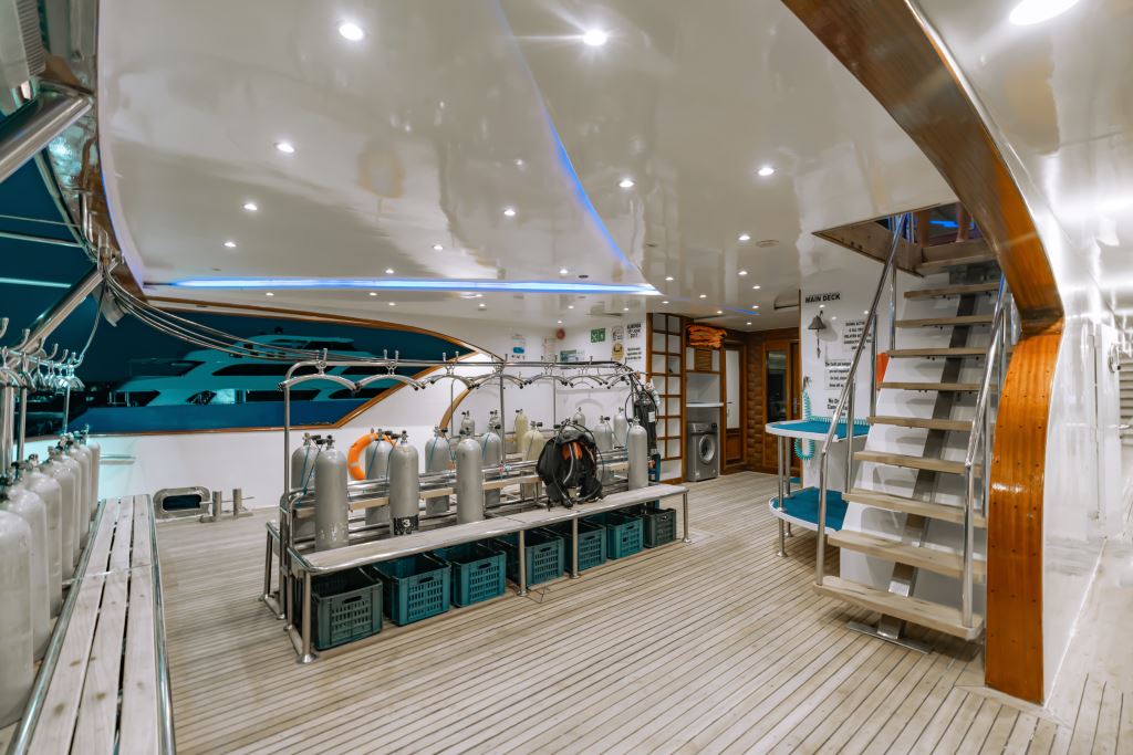 The Almonda provides a comfortable base for your adventure. The boat features spacious, air-conditioned cabins with en-suite bathrooms, a generous sun deck, and modern dive facilities. Guests can enjoy freshly prepared meals, a relaxed onboard atmosphere, and the guidance of a professional and experienced dive crew.