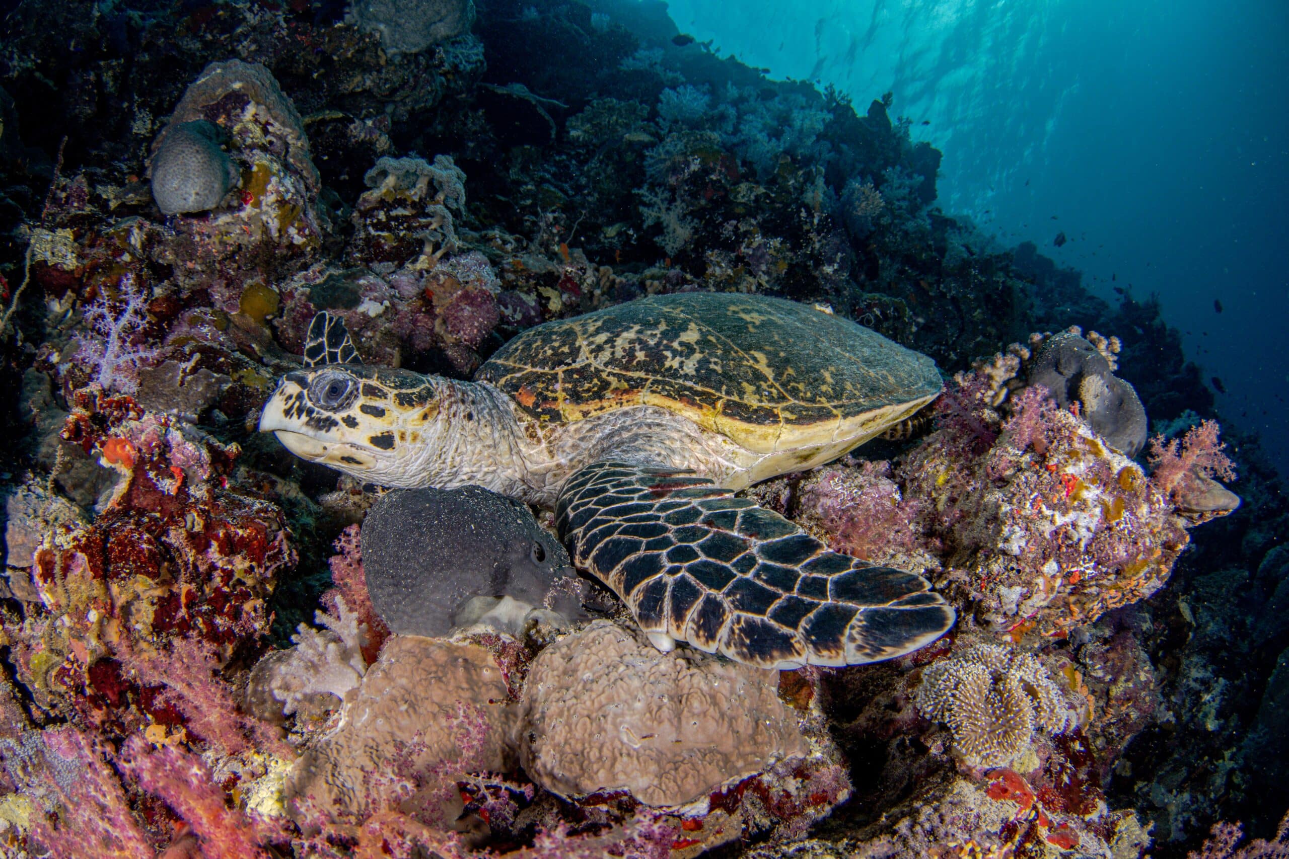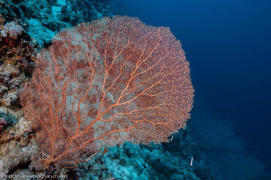 Seven Sisters is has several plateaus that stretch out to the blue making it possible to see hammerhead sharks, silkies, silver tips and the occasional manta ray. The reef walls are littered with gorgonian forests as well as other hard and soft corals.