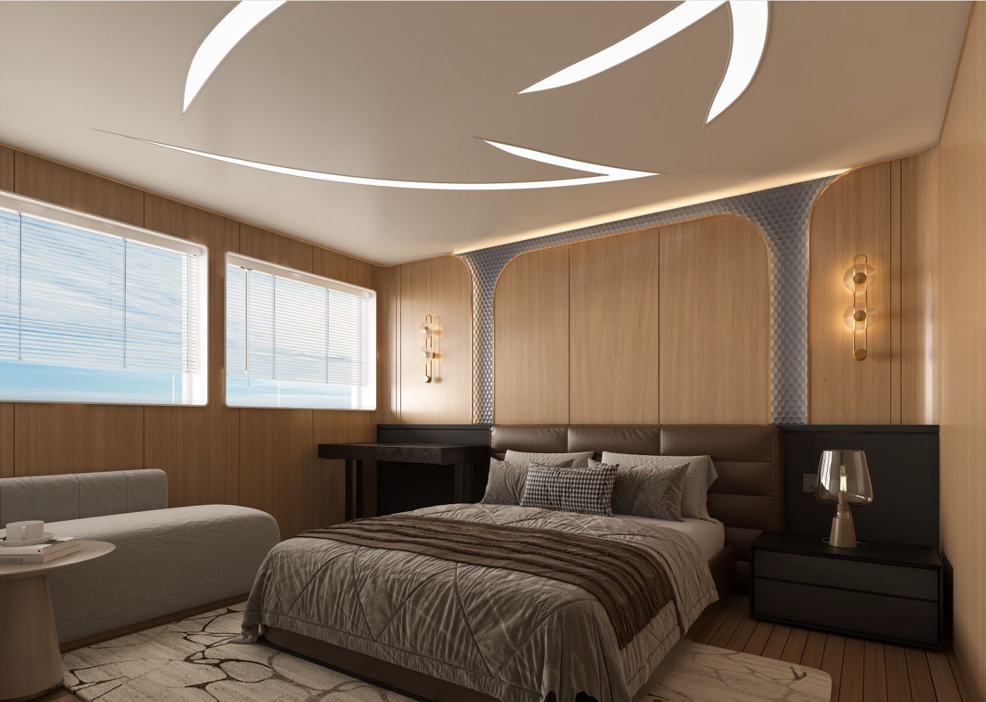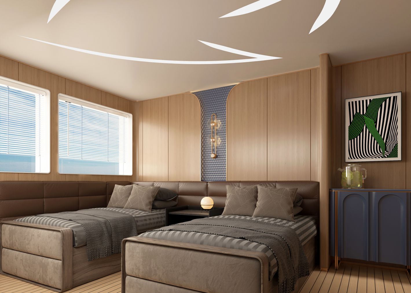 - 1 Master cabin with panoramic sea view windows, a sofa, a balcony, and a kid’s room