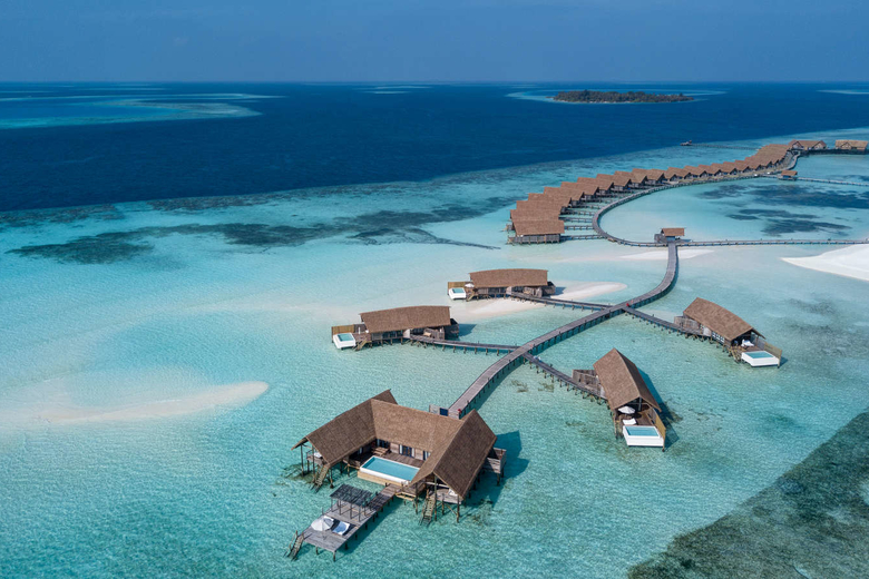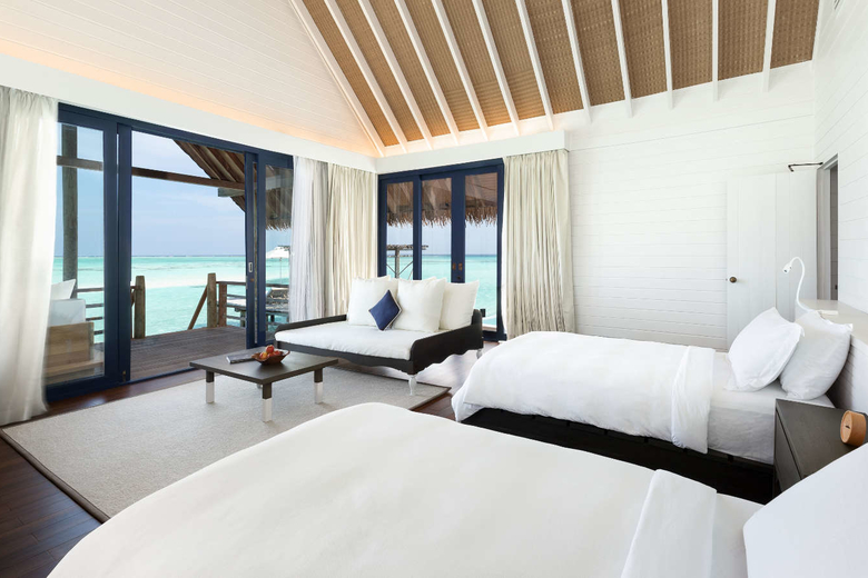- One Bedroom Water Villa with Pool - These light-filled villas sit on their own secluded jetty, each with a private entrance deck, surrounded by the aquamarine ocean. Outside, there’s a new private pool and a balcony with a daybed, where you can relax as the sun rises and sets on the ocean. Inside, the spacious living area with floor-to-ceiling windows provides plenty of space to unwind.
