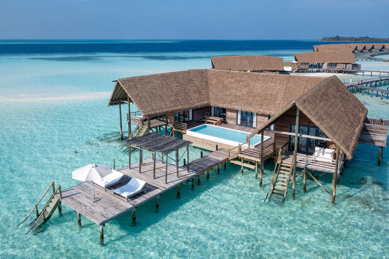 - Cocoa Water Villa with Pool - This new overwater villa features a large terrace with a 10-metre private swimming pool, offering some of the island’s best views of the iconic Maldivian sunset. The villa was designed with space in mind: there’s a living room, an en suite master bedroom, a private study and a gym. The villa can be connected to the COMO Sunset Water Villa via an overwater wooden walkway, or closed off for complete privacy.