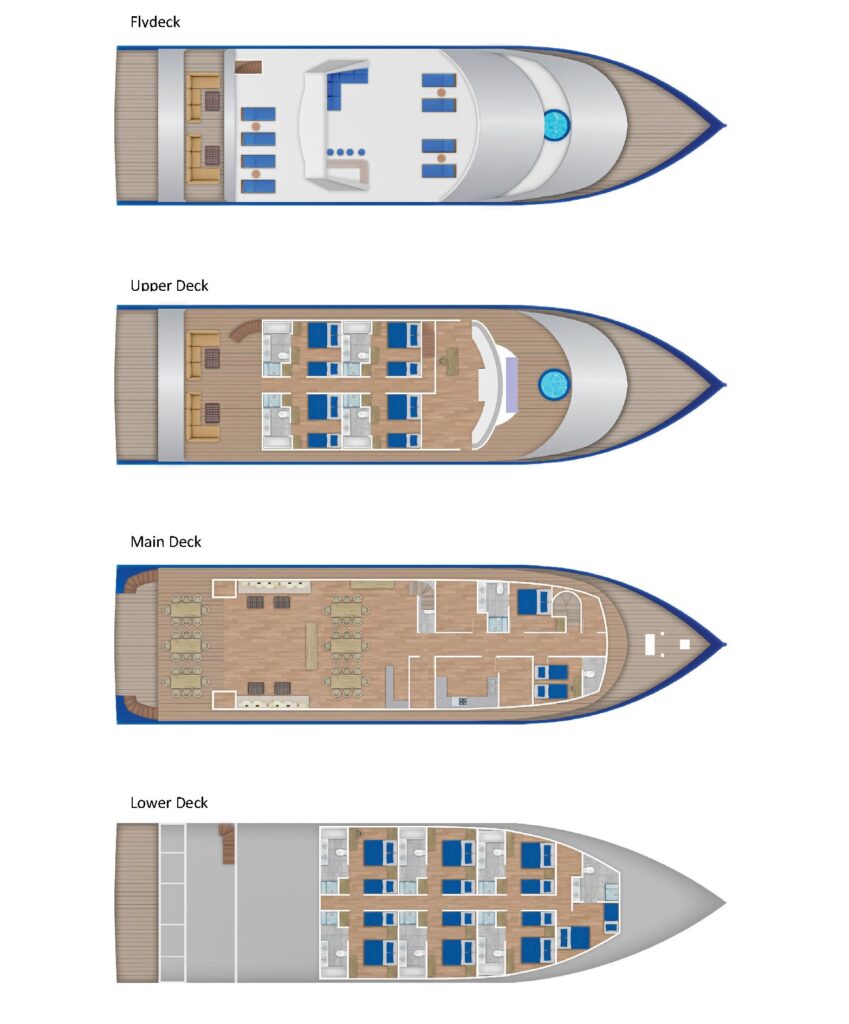 Please note that the exact route and dive sites may vary based on local regulations, guest preferences, weather conditions, and logistics, at the discretion of the Captain. This ensures the best possible sightings and activities while prioritizing safety.