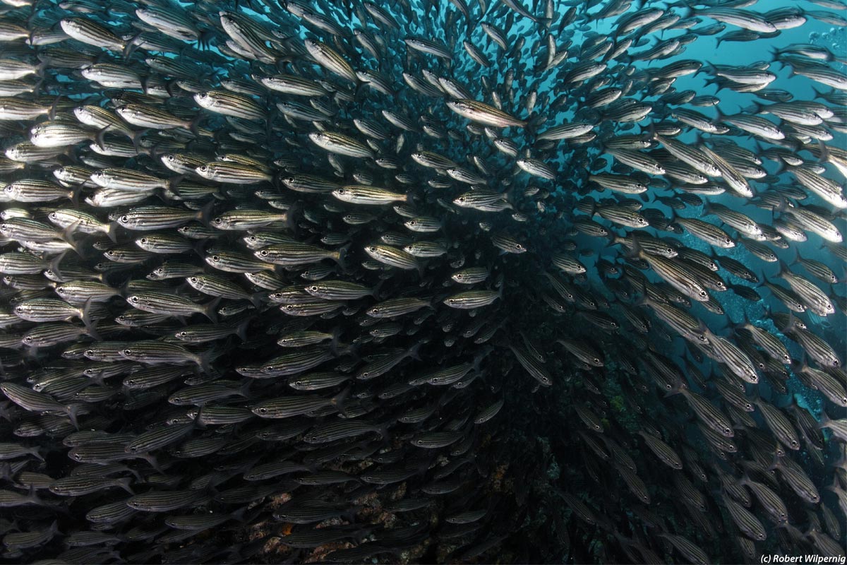 The Galapagos are one of those rare places where you can dive through a school of hundreds of hammerhead sharks to find a whale shark cruising along through the middle of them. Toss in silky sharks, sea turtles, giant morays and schooling fish in their thousands… And that’s just the first dive at Darwin!