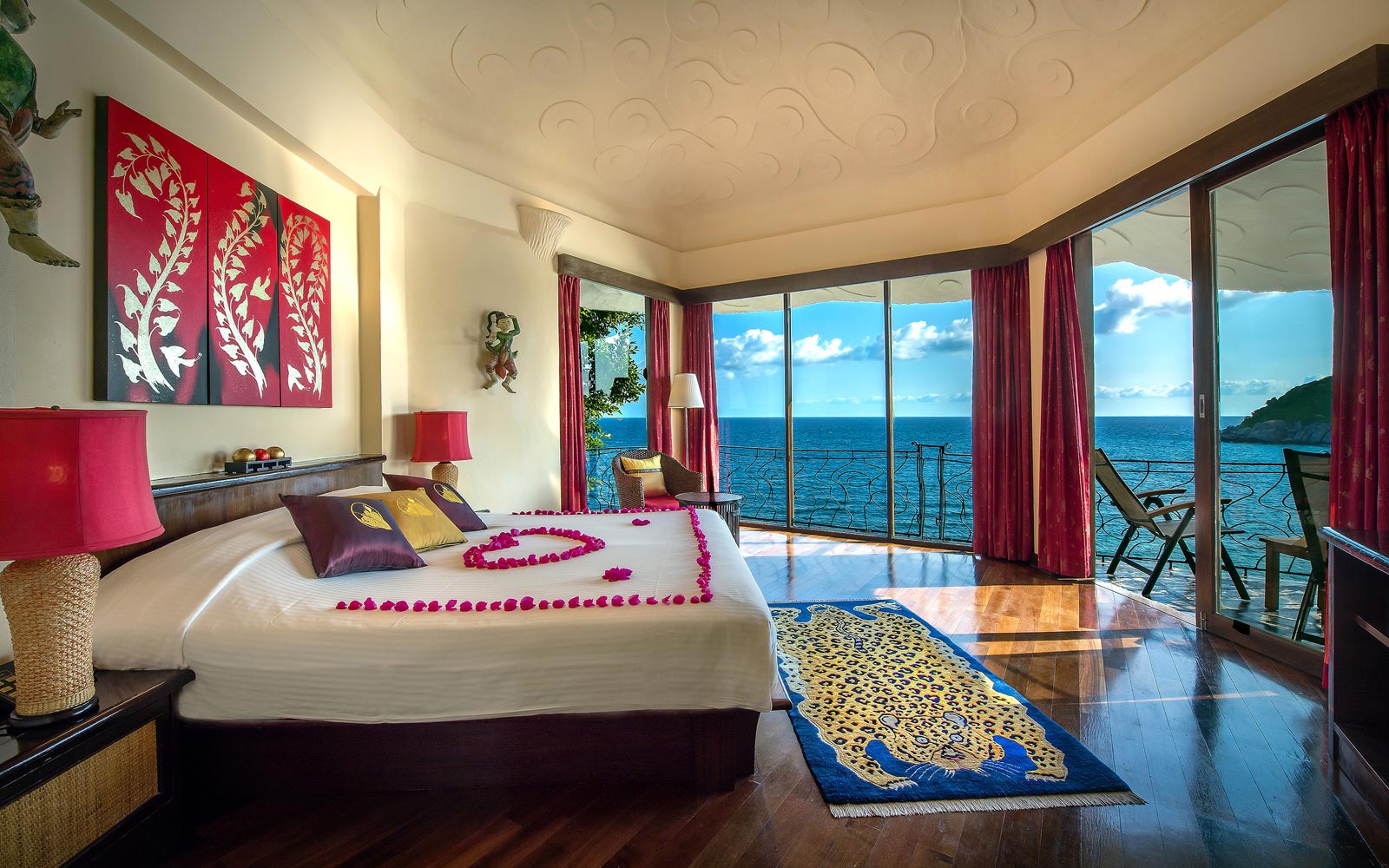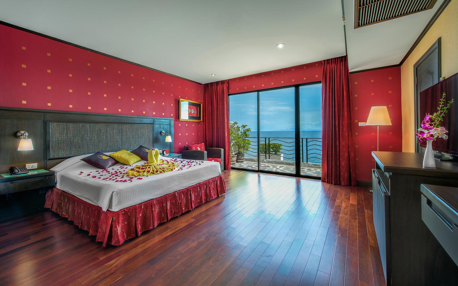 At Jamahkiri Resort and Spa guests can select beautiful Deluxe Rooms from our seaside hotel, delightfully appointed with pink flowers flowing down to the blue waters of the gulf of Thailand. Or, our unique pavilions individually designed and decorated with comfort and elegance in mind. Our resort offers boundless ocean views and the comfort, the architecture of the resort combines space, color, and natural light with traditional Thai design themes to create a sense of harmony with nature. Room Facilities