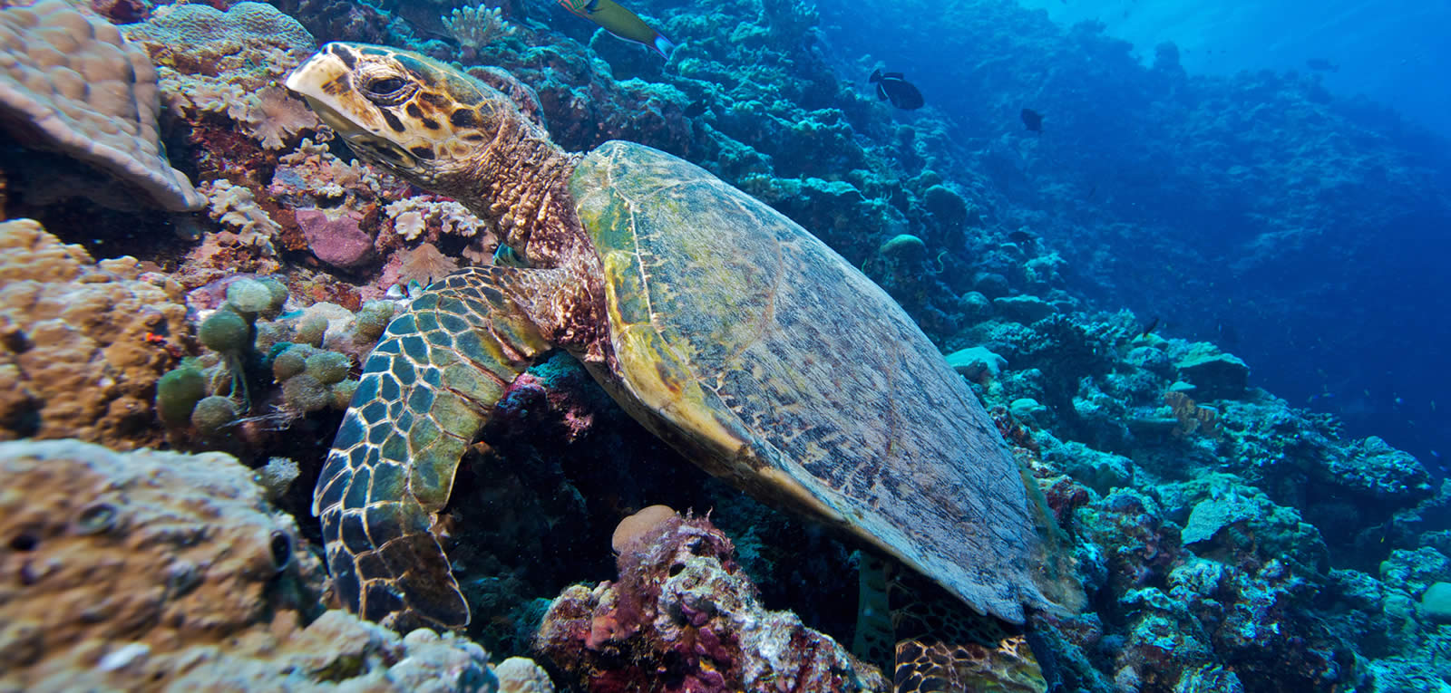 Some 50 dive sites are spread across the Lhaviyani Atoll, with new sites still being found. The topography results in a wide variety of sites and an astounding quantity of fish life. Over 15 species of sharks have been sighted in the Atoll, 6 of which are regularly seen by divers. Rays are very common, and with the right seasonal winds and currents, you can be lucky to meet the majestic Manta Rays. We’re also fortunate to have a large community green sea turtles on our doorstep But there is a lot more on offer than just sharks, mantas and turtles…