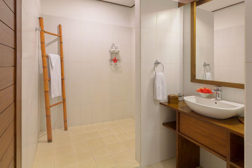 - Amenities: Semi open-air bathroom, air-con, Wi-Fi, minibar, safe, tea/coffee, desk, and reading lights.