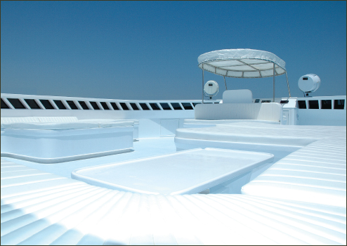 There are two indoor saloon areas. The main saloon and the indoor Sky Lounge are spacious and comfortable, each with a 42” plasma screen TV and entertainment system, air-conditioning and bar facilities. The Sky Lounge has comfy sofas and a bar, and can double as a second teaching area. Blue Horizon has 2 large sundecks and an open-air freshwater jacuzzi, perfect to relax in after a day’s diving.