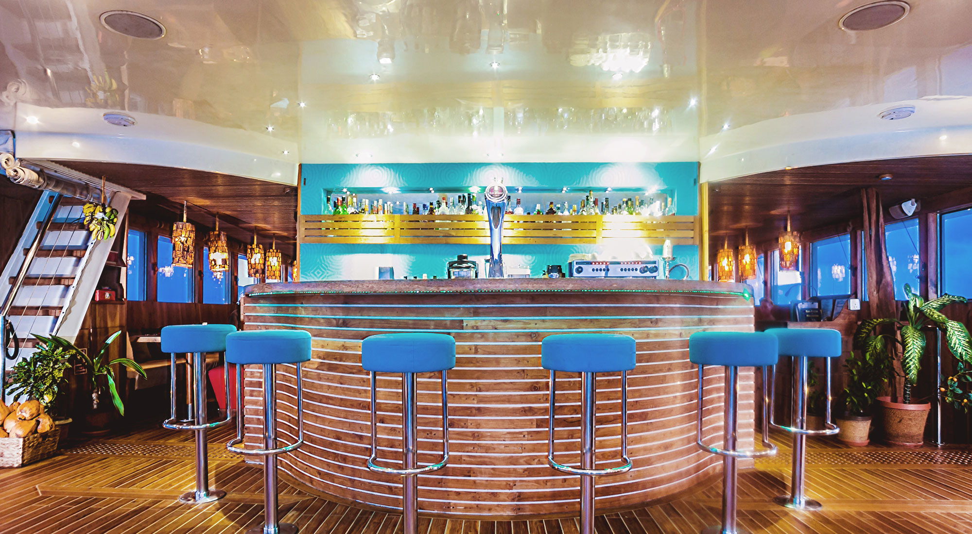 Diving with Scubaspa is a pleasurable, relaxed experience with all dive related activity taking place on a separate dive boat, one accompanying each yacht. This ensures the main vessel is undisturbed by the noise and activity. Approximately 20m in length, the dive boat carries all the equipment, including air compressors and state-of-the-art nitrox; purpose built for comfort, each has plentiful seating, multiple entry points, stern platform and on-board toilet facilities. Both yachts are the only vessels in the Maldives awarded PADI 5 Star Dive Resort status. Divers of all abilities are welcomed by the five experienced, multilingual dive masters/instructors and boat crew to enjoy the very best of the Maldives from this luxurious floating resort. Maldivian coral reefs are home to the richest diversity in the region and are the seventh largest on the globe, accounting for 5% of the world’s reef area. They are world famous for diving and snorkelling enthusiasts and beginners alike, offering countless opportunities to swim with a wide variety of marine life, large and small, in crystal clear waters. Diving in the Maldives is a year-round activity with water temperatures a constant 26-29°C. Sea and sky are clearest from December to May, with plankton more abundant in October and November, making the sea murkier but with bigger fish more active and more easily seen. Mantas, whale sharks, turtles, reef sharks and hammerhead sharks are found in the Maldives all year round. The maximum depth per dive is limited to 30m; diving with a computer and an alternative air-source is mandatory, and it is prohibited to dive alone or do decompression dives. The use of harpoons or spears is prohibited and it is forbidden to remove corals, dead or alive, or any other sea animals, including fish. In the Maldives, it is illegal to collect any coral, shells or other souvenirs from the ocean. Please check your certification level. Open water diver is certified to dive down to only 18 meters, advanced open water diver is certified to dive down to 30 meters. Night and deep dives are available only to divers with advanced diver certification. If you wish to upgrade your level, advanced diver course is available on board.- Restaurant