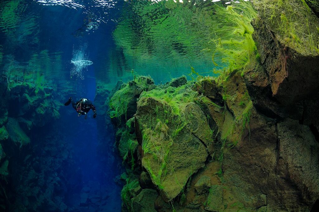 Welcome to Silfra, an otherworldly dive site within Iceland’s Thingvellir National Park, renowned for its pristine waters and geological significance. Fed by glacial meltwater filtered through volcanic rocks, Silfra boasts astonishing visibility of up to 100 meters (328 feet), revealing a vibrant underwater world of colorful formations.